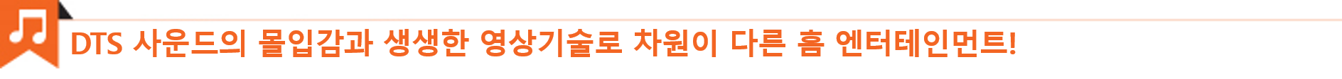 또한, 객체 기반 사운드에 상하를 표현하는 높이(height) 요소를 추가한 서라운드 사운드 기술 DTS 버추얼:X는 천장에 스피커를 설치하지 않아도 소리의 방향 및 위치에 높낮이까지 반영해 보다 사실적인 콘텐츠 감상을 지원합니다. 하나의 콘텐츠에도 다양한 사운드 요소가 적용되는 요즘, 방안을 가득 채우는 DTS의 입체 음향으로 영화, 게임, 그리고 음악에 몰입감을 더해보세요!
