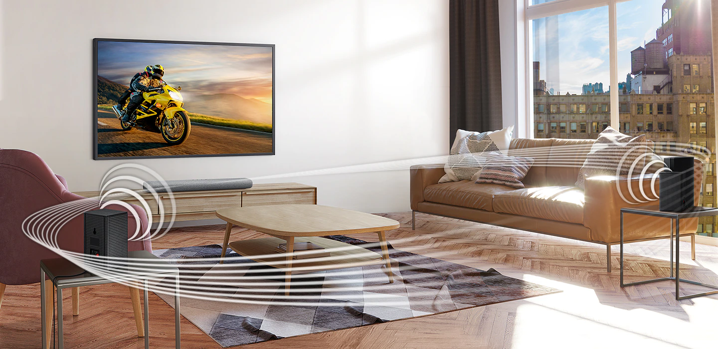 이 모든 특징은 DTS 버추얼:X 기술로 완성됩니다. 서라운드 사운드에 높이 요소를 추가해 마치 실제 상황처럼 생생한 음향을 제공하는 DTS 버추얼:X는 음악이나 영화 등 다양한 콘텐츠를 위한 최고의 경험을 선사합니다. 제작자의 의도대로 사운드를 풍부하고 실감 나게 제공하는 DTS의 기술을 통해 몰입감 넘치는 홈 엔터테인먼트를 즐겨보세요!