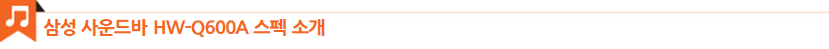 삼성 사운드바 HW-Q600A의 주요 스펙은 다음과 같습니다. (전체 스펙은 제품 홈페이지를 참고하세요!)
