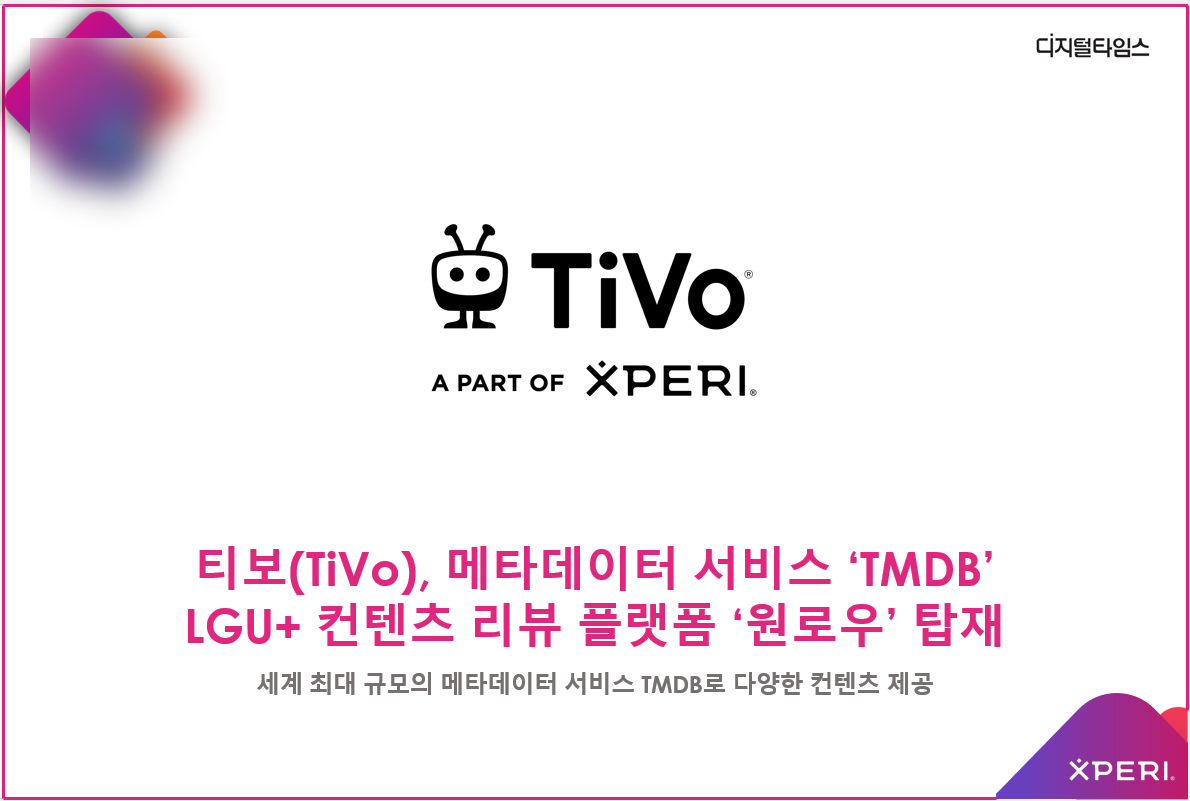티보(TiVo), 메타데이터 서비스 ‘TMDB’ LGU+ 컨텐츠 리뷰 플랫폼 ‘원로우’ 탑재 기사를 소개해 드립니다.
