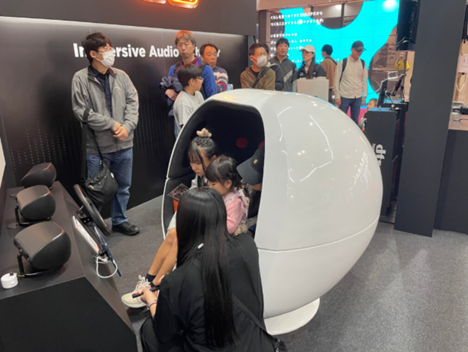 부스 방문객들이 특히 관심을 가졌던 또 다른 데모는 실제 차량 환경을 시뮬레이션한 DTS 오디오 업믹싱 체험이었습니다. DTS 업믹싱 기술은 라디오, CD, 스트리밍과 같은 스테레오 오디오 소스를 차량 내부의 서라운드 또는 공간 오디오 환경에 맞춰 음질을 향상시켜주는 기술입니다.