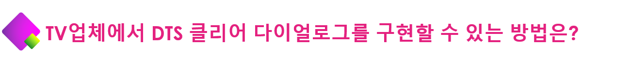 TV 가 점점 더 얇아지면서 내장 스피커를 탑재할 수 있는 공간도 점점 더 줄어들게 되죠. 따라서 음질이 저하되기 마련인데요. 특히 영화나 드라마를 보다 대사가 잘 들리지 않아 볼륨을 높이거나 자막을 켜야 하는 경우가 한번쯤은 있었을 텐데요. DTS가 출시한 DTS 클리어 다이얼로그(DTS Clear Dialogue)는 이러한 문제를 해결하기 위한 솔루션입니다. DTS 클리어 다이얼로그에 대해 자세히 알아볼까요?
