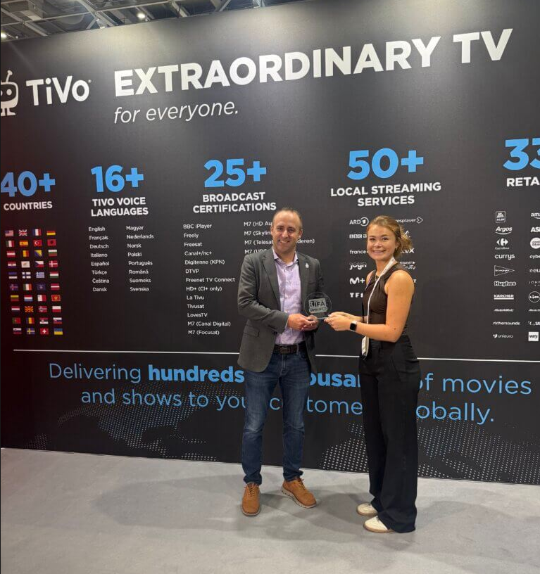 또한, TiVo OS는 TV 부문에서 권위 있는 IFA 최우수상(Best of IFA Award)을 수상하며 제품의 영향력과 혁신성을 인정받았습니다.